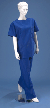 OP-Hose: Bund mit Gummizug (wahlweise auch mit Schaube und Kordelzug, seitlicherSchlitzverschluß mit Untertritt) Paßform und Strickbündchen, eine Gesäßtasche rechts